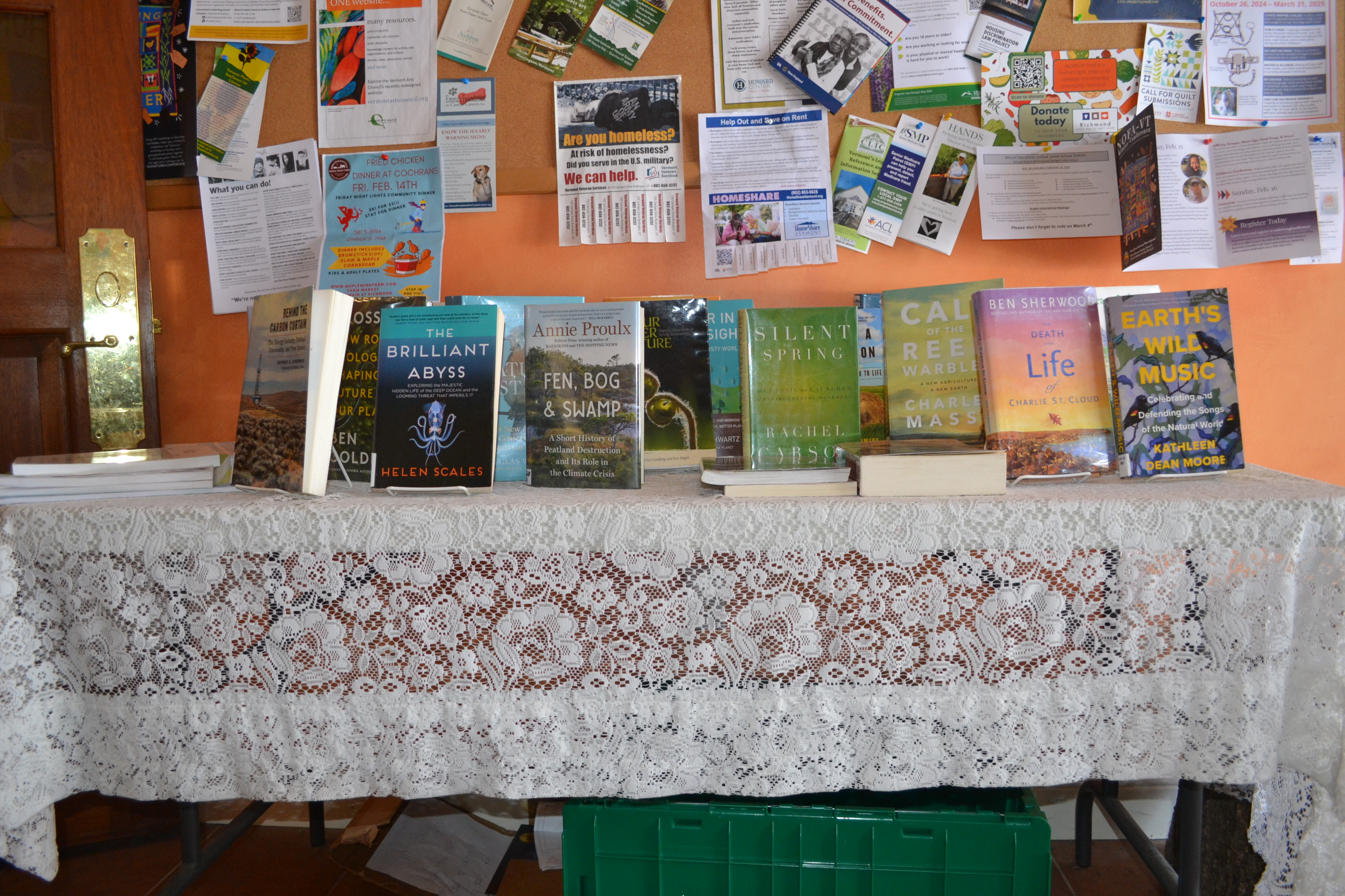 - An inviting area for young children, including books for all ages and stages, child-sized seating, and even a landlocked boat!